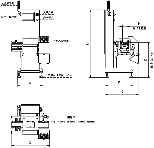 自动检重秤由输送机(计量部分)、称重传感器、显示控制器和剔除装置等部分组成。